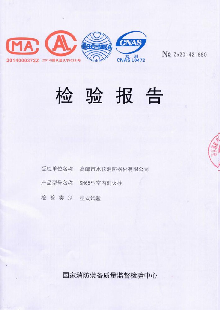 我廠創(chuàng)辦于一九七六年六月,現(xiàn)有職工600人,其中各類技術(shù)和管理人員68人。擁有固定資產(chǎn)5000萬元,占地面積35000多平方米,建筑面積25000多平方米。建立了完善的質(zhì)量體系,取得多種“計量合格確認證書”,并成為江蘇及多省的消防協(xié)會會員單位。工廠技術(shù)力量雄厚,生產(chǎn)和檢測設(shè)備齊全,工藝先進。生產(chǎn)“水花”牌水帶接口: KDK65, KD65,KY65,KN65。消防水槍: QZG3.5/7.5, QZ3.5/7.5,QP8/0.7Z泡沫水槍。室內(nèi)消火栓: SN65, SNW65-I,SNZ65, SNZW65-I。 消防軟管卷盤JPS0.8-19/25。生產(chǎn)的“郵花”牌,消防有襯里水帶:65-8、10、 13、 16、20、 25型; 80-16、 20、25型。水帶接口: KD50、65; KY50、65;KN65。消防水槍: Q2Z3.5/7.5、 5。 室內(nèi)消火栓: SN65, SNW65-I, SNZ65, SNZW65-I。 并于二零一五年五月通過公安部消防產(chǎn)品合格評定中心3C換版檢驗,獲得以上產(chǎn)品所有的強制認證證書,準予生產(chǎn)和銷售,產(chǎn)品行銷全國各地,深受廣大用戶好評。